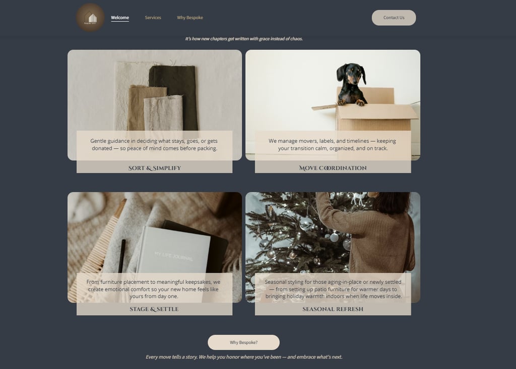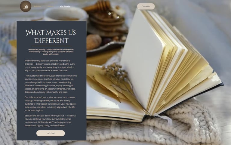 "Rustline helped transform my ideas into a clear brand and website that truly reflects the care and professionalism behind Bespoke WNY."